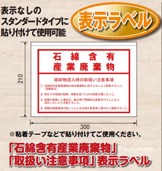 「石綿含有産業廃棄物」のラベルの注文。