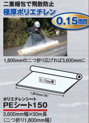 ⇒当初は、ロングタイプを検討していたが、処分業者から中身の見える梱包で指示があったため、インターアクションへの問合せ時にPEシートへ決まる。