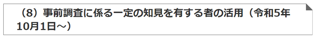 詳細については、事前調査は以下の(2)、(7)、有資格者による調査は以下の(8)を参照してください。