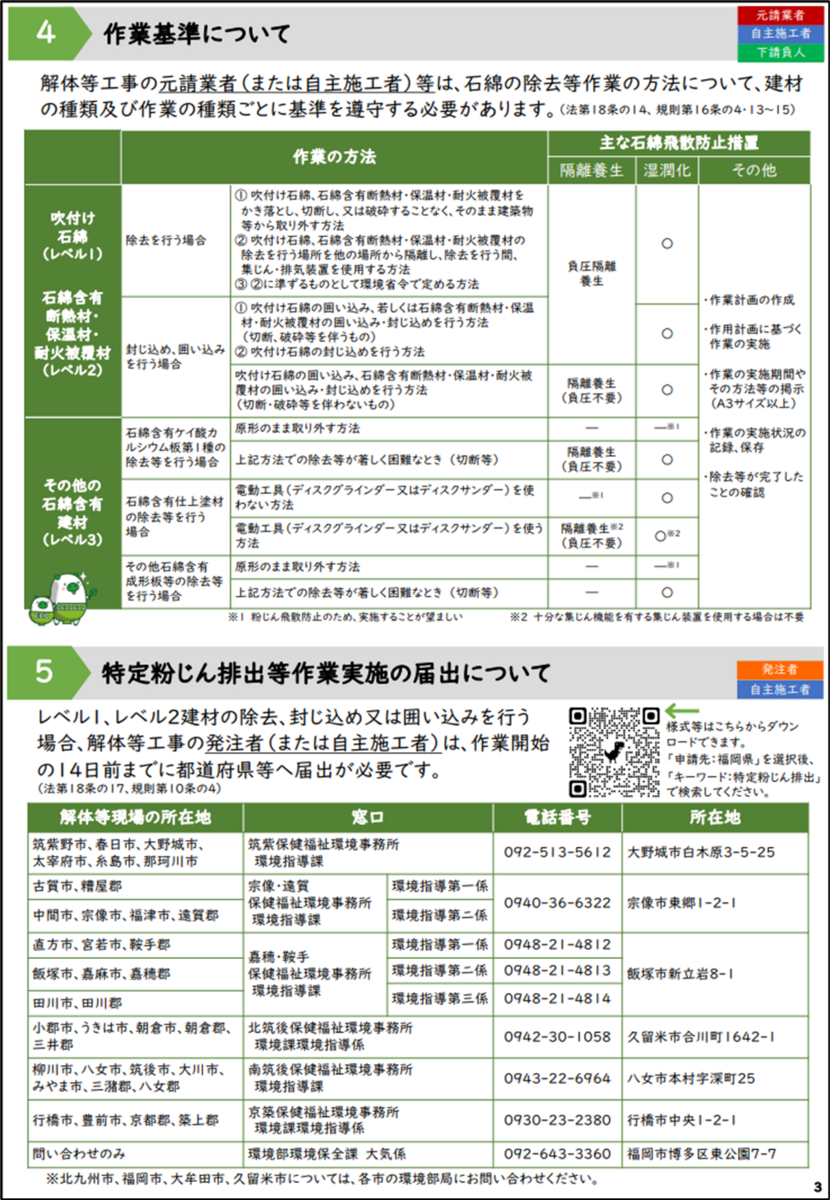 2023-12-28 【福岡・佐賀・長崎・熊本】石綿ポータルサイト リレーバッグ 石綿含有表示シール (50枚入) サイズ600×300(mm) 貼るだけ簡単 材質ポリエステル アスベストレベル3 フレコン リレーバッグ Amazon 福岡県です。 福岡県 | 地方自治体の規制情報 | 石綿アスベスト規制最新情報/石綿アスベスト規制最新情報.com 佐賀県です。 佐賀県 | 地方自治体の規制情報 | 石綿アスベスト規制最新情報/石綿アスベスト規制最新情報.com 長崎県です。 長崎県 | 地方自治体の規制情報 | 石綿アスベスト規制最新情報/石綿アスベスト規制最新情報.com リレーバッグ RB100S2B-DCL-A (2袋入) アスベスト(石綿) がれき用角型フレコン 石綿表示 取扱注意事項表記 内面ラミネート加工 容量1000L 2点ベルト サイズ:900×900×1200(mm)法令遵守 産廃許可申請写真可 リレーバッグ Amazon 熊本県です。 熊本県 | 地方自治体の規制情報 | 石綿アスベスト規制最新情報/石綿アスベスト規制最新情報.com 福岡県が作成したチラシを転載しておきます。 リレーバッグ 石綿含有表示シール (10枚入) サイズ600×300(mm) 貼るだけ簡単 材質ポリエステル アスベストレベル3 フレコン リレーバッグ Amazon